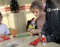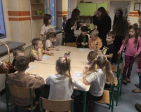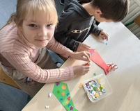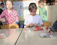 Wspólnie przygotowaliśmy różnymi technikami prace plastyczne – flagi wyklejane kulkami bibuły i malowane farbą, godło kolorowane kredkami, mapy Polski czy biało - czerwone chorągiewki.
